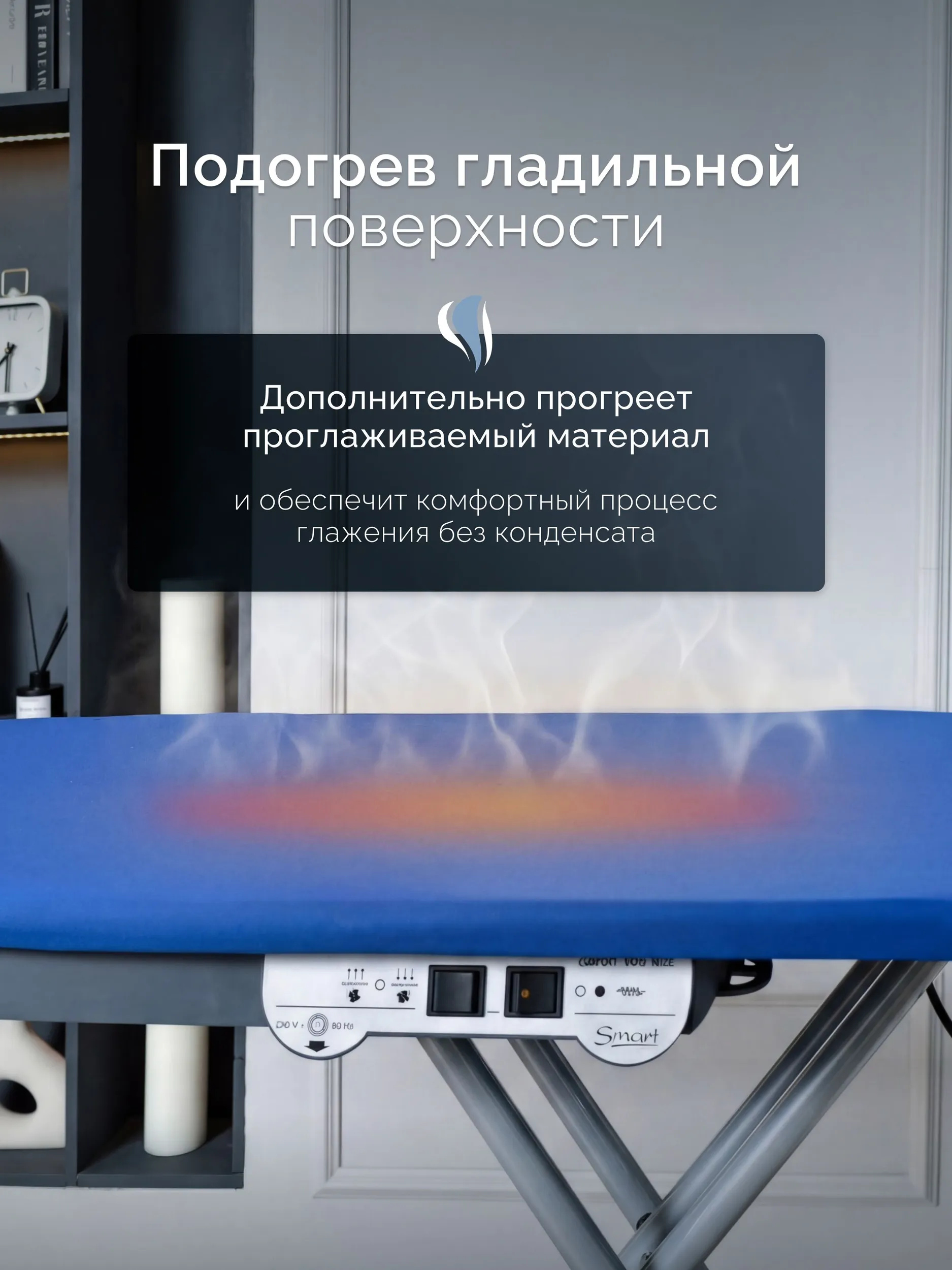 Облегчает работу во время глажки. Вы получаете хорошо отглаженное с обеих сторон белье. Так же благодаря данной функции рабочая поверхность всегда остается сухой. Температура подогрева доски до 60 гр.