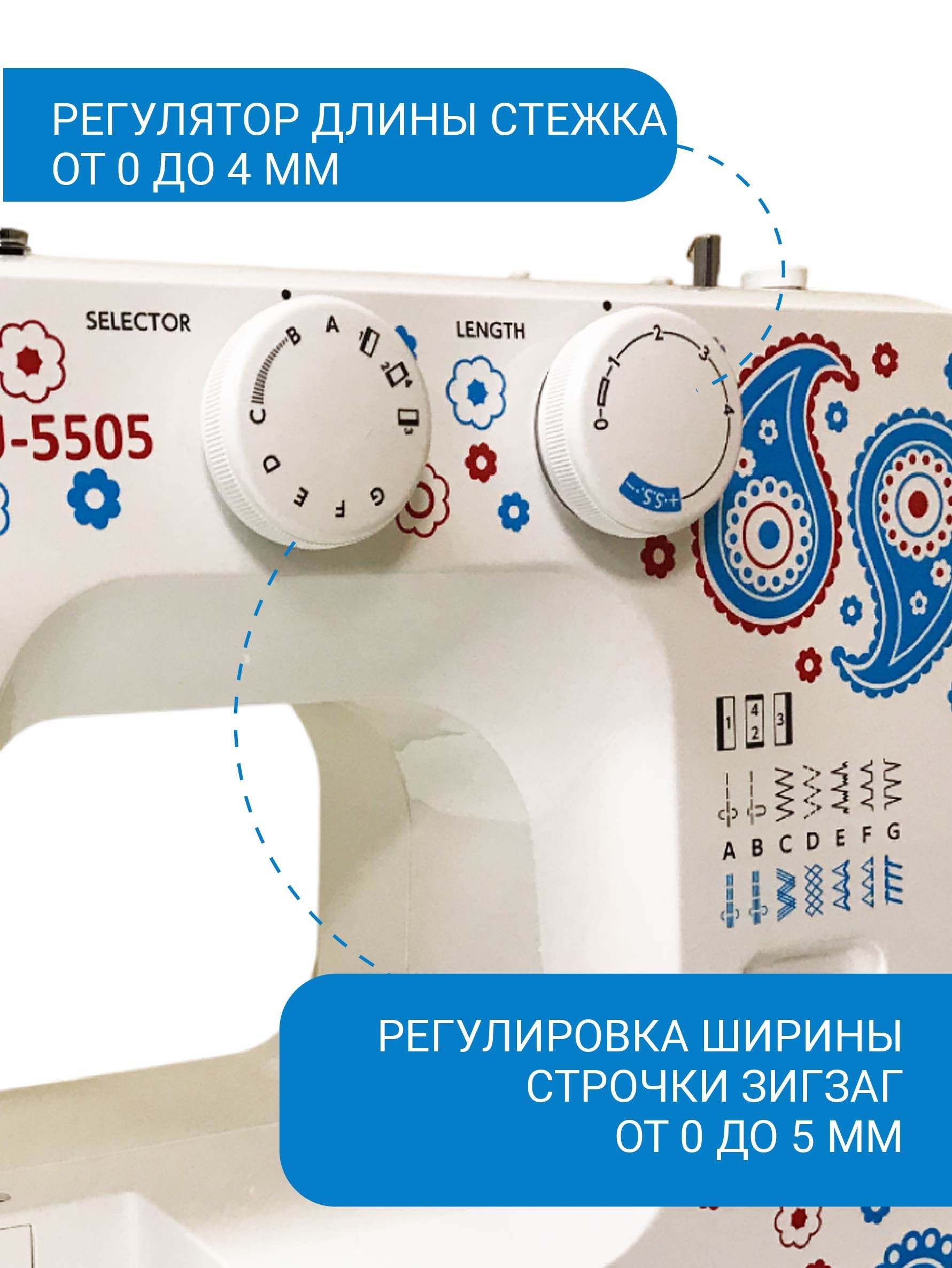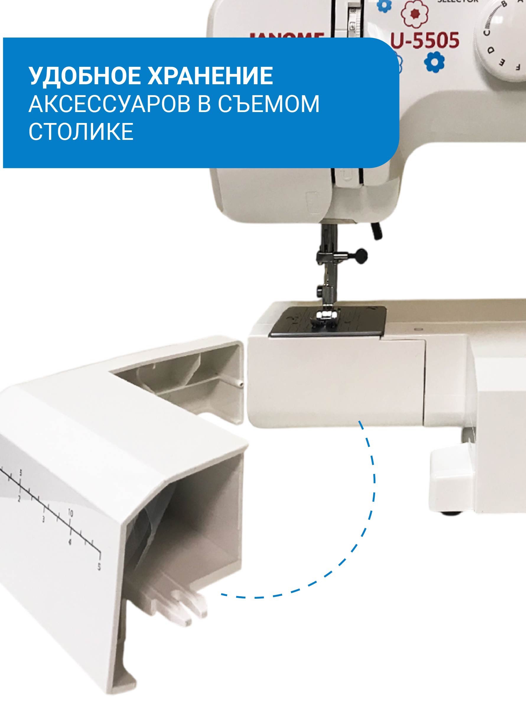 Швейная машинка Janome 5505- это лёгкая в управлении электромеханическая швейная машина, которая подойдёт для любых домашних работ. Данная модель оснащена вертикальным челноком, без проблем шьёт любые виды тканей и выполняет все необходимые швейные операции: зигзаг, эластичный зигзаг, потайные, трикотажные, оверлочные строчки. Для выполнения петли в полуавтоматическом режиме в комплектацию этой модели входит рамка для петель. Съёмный рукав позволяет обрабатывать узкие детали, манжеты, детские вещи, а с помощью клавиши реверс можно штопать и делать закрепку в конце строчки. Janome U5505 подойдёт для тех, кто ищет надёжную помощницу для освоения мира шитья.